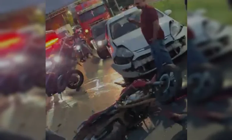 Um grave acidente de trânsito envolvendo quatro motocicletas e um carro deixou uma pessoa morta e duas feridas na noite desta terça-feira (10), em Águas Lindas de Goiás. A colisão aconteceu na altura do km 24 da BR-070, no Entorno do Distrito Federal.