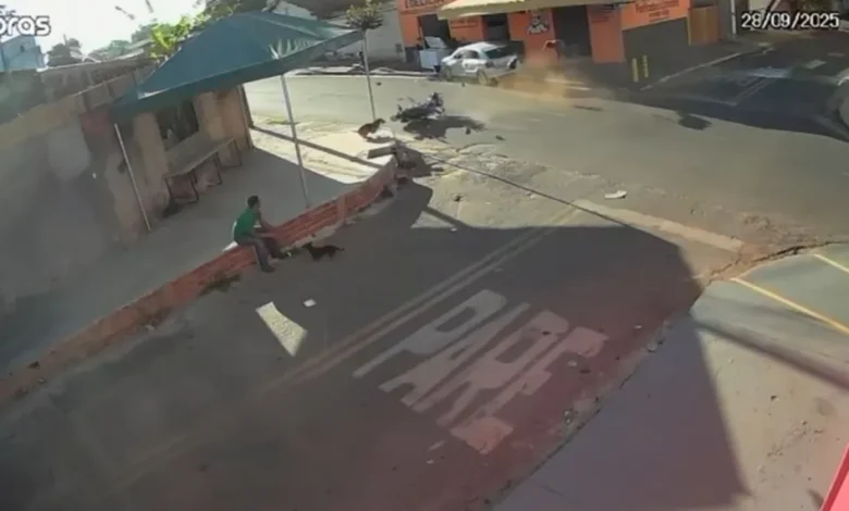 Um acidente grave foi registrado na tarde deste domingo (28) no Jardim Alvorada, região Leste de Anápolis, envolvendo uma motociclista, um carro e duas pedestres. Segundo imagens de câmeras de segurança, a motociclista avançou a sinalização de Pare e colidiu com um veículo que trafegava pela Rua Cruzeiro do Sul.