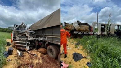 Carro invade contramão, bate de frente com carreta e mata cinco pessoas na BR-414, em Cocalzinho de Goiás