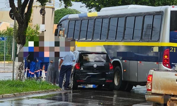 Carro bate em ônibus no Bairro Ipanema, em Catalão