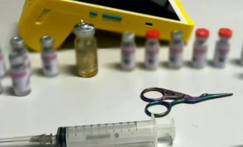 Durante a ação policial, os agentes apreenderam diversos frascos contendo substâncias distintas, entre elas medicamentos para emagrecer, produtos com características de anabolizantes e compostos de uso restrito no país. As embalagens chamaram atenção, pois não possuíam rótulos, número de lote, data de validade ou registro na Agência Nacional de Vigilância Sanitária (Anvisa).