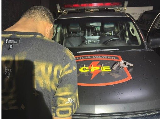 Policiais militares da Companhia de Policiamento Especializado (CPE) prenderam um homem de 22 anos suspeito de roubar a arma de um comerciante idoso no início da tarde desta quinta-feira (12), no Jardim das Cascatas, em Aparecida de Goiânia. A equipe agiu após receber informações e intensificar buscas para localizar os envolvidos.