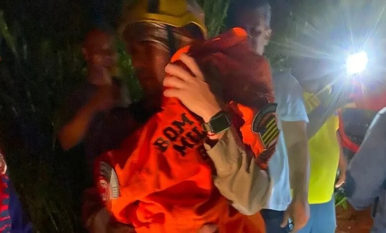 Os voluntários decidiram entrar em uma área de vegetação densa e de difícil acesso e encontraram o menino consciente, assustado, mas sem ferimentos visíveis. Logo após o resgate, eles acionaram o Corpo de Bombeiros, que assumiu o atendimento no local.