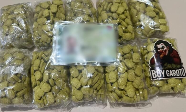 Durante a vistoria, os policiais localizaram uma cédula de identidade (RG) no interior da mochila. Também havia uma caixa preta e vermelha com dez pacotes transparentes. Dentro deles estavam comprimidos com características semelhantes à droga conhecida como “ecstasy”.