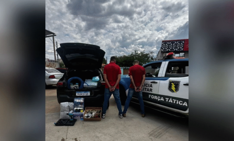 Em seguida, com base nas denúncias e nas informações sobre o veículo usado pela dupla, equipes da Força Tática do 9º Batalhão localizaram os criminosos na Avenida Goiás. Durante a abordagem, os policiais apreenderam três maquininhas, produtos utilizados nas vendas e o carro usado nos golpes, reforçando as provas contra os suspeitos.