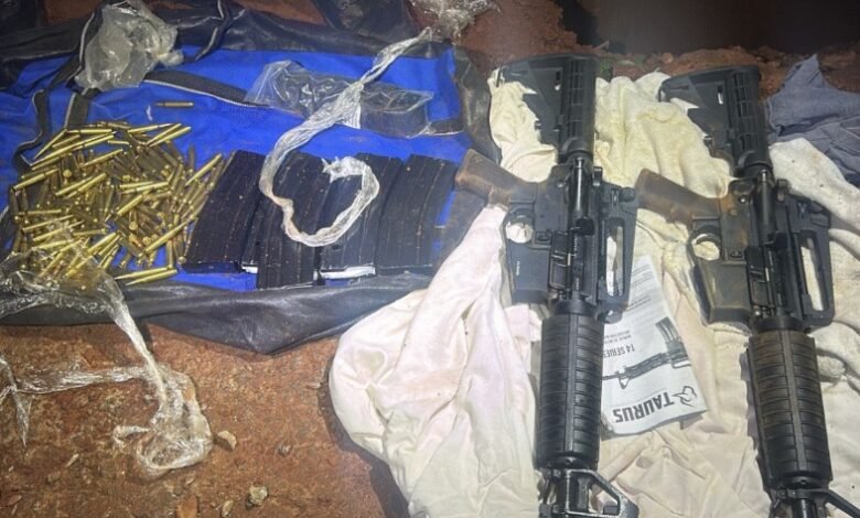 Os policiais localizaram o esconderijo após receberem uma denúncia anônima. Eles encontraram os fuzis calibre 5.56 enterrados dentro de um tonel, no quintal de uma casa no Jardim das Hortências. As armas estavam embaladas em sacos plásticos para evitar deterioração.