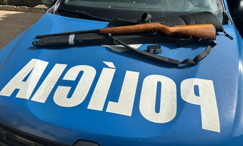 Em resposta rápida, equipes do 39º Batalhão da Polícia Militar foram até o endereço, realizaram a abordagem e iniciaram buscas no imóvel. Durante a vistoria, os policiais encontraram uma espingarda calibre .22 escondida no telhado da casa. Em seguida, no interior da residência, a equipe localizou e apreendeu 50 munições do mesmo calibre.