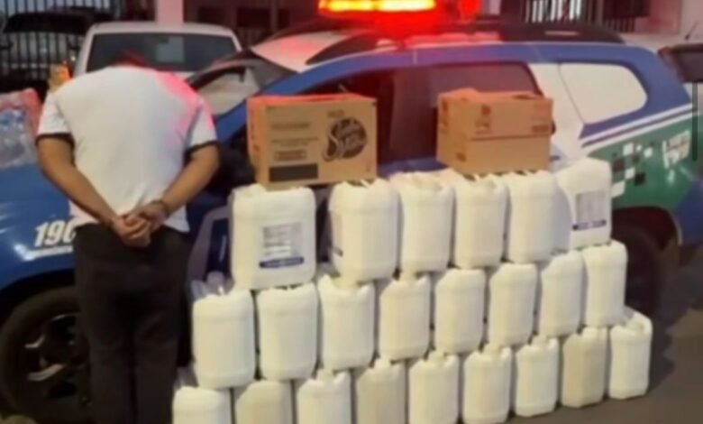 A Polícia Militar prendeu um homem de 36 anos, nesta terça-feira (25), e recuperou 23 galões de defensivos agrícolas em Aparecida de Goiânia. A carga desapareceu no dia 15 de outubro na Fazenda Santo Antônio, depois que eles a retiraram de um caminhão estacionado. O prejuízo estimado chegava a R$ 144 mil.