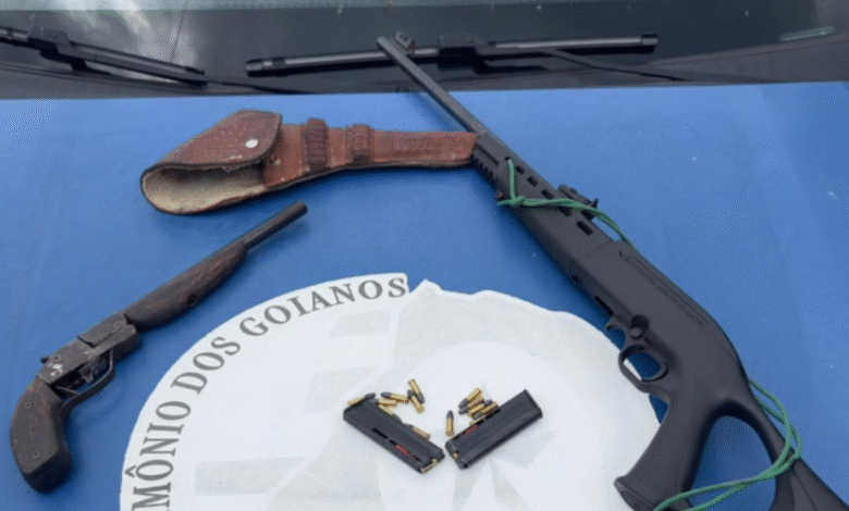 Durante o depoimento inicial, o homem afirmou que guardava armas na residência. A polícia encontrou uma carabina calibre 22, uma garrucha de fabricação caseira e diversas munições. A vítima confirmou as ameaças e relatou que o homem escondia as chaves da casa e do veículo, além de furar o pneu do carro, impedindo-a de fugir.