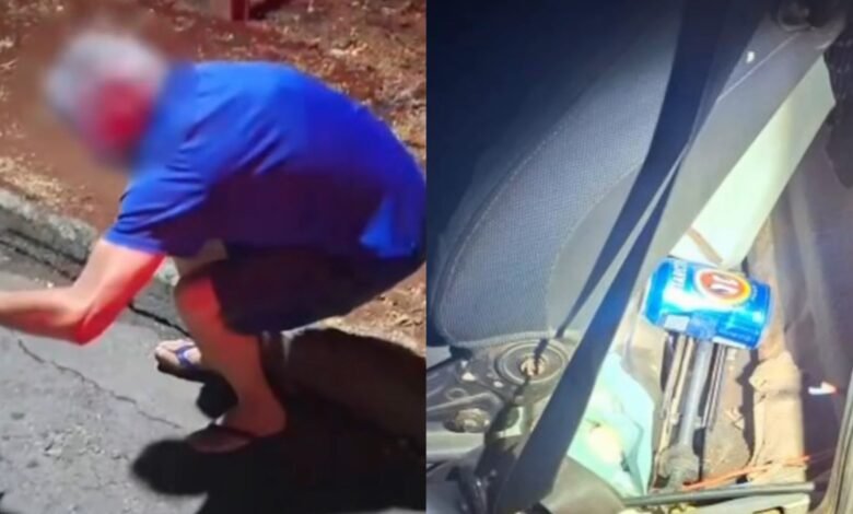De acordo com a corporação, o condutor do Ford Courier vermelho fugiu do local sem prestar socorro. O idoso acabou sendo localizado pouco tempo depois apresentando claro sinais visíveis de embriaguez. Dentro do carro, os policiais encontraram várias latas de cerveja.
