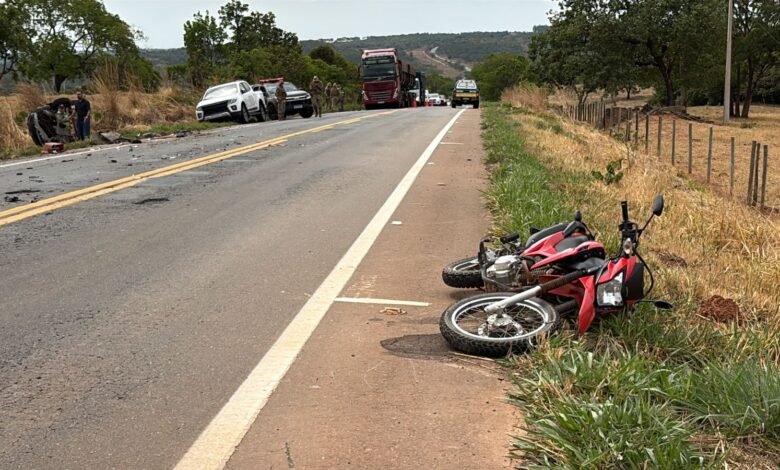 Motociclista fica ferido em acidente com carreta e carro na GO-330, em Catalão
