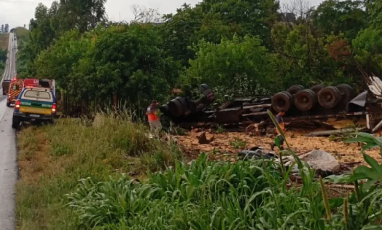 Motorista morre após caminhão carregado com milho tombar na GO-174, em Rio Verde