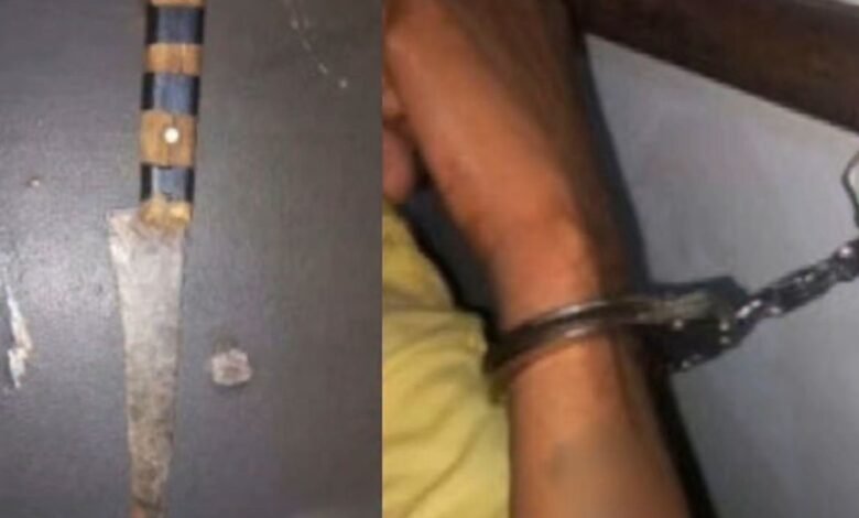 Em seguida, os agentes iniciaram buscas pela região e encontraram o suspeito em um bar da cidade. Durante a abordagem, os guardas identificaram uma faca na cintura do homem.