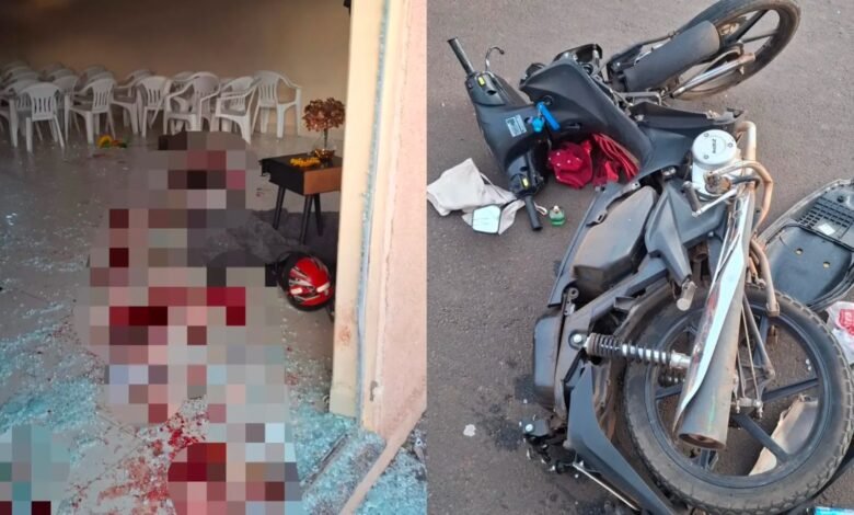 Mulher morre após motocicleta atingir carro estacionado e invadir igreja em Caiapônia