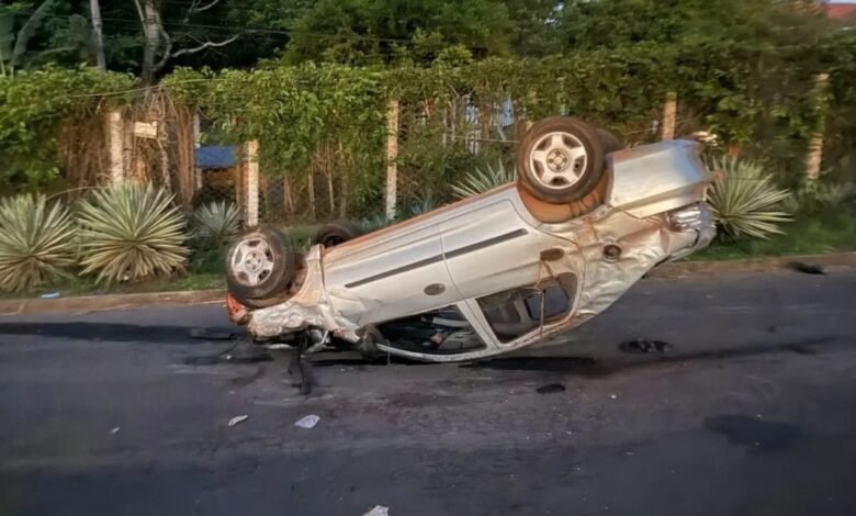 Mulher perde controle do carro e capota veículo em bairro residencial de Catalão