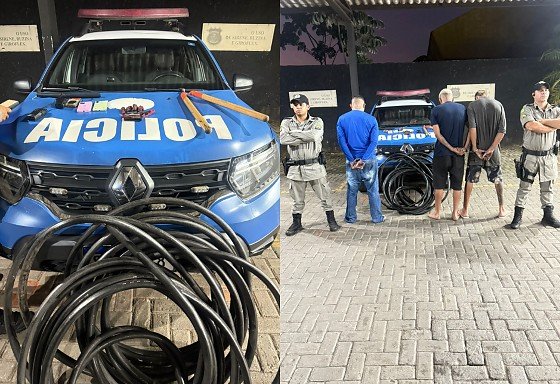 Durante a vistoria no interior do carro, os militares encontraram diversos pedaços de fios, além de uma tesoura de grande porte usada para o corte do material, dois rádios comunicadores e aproximadamente 70 quilos de fios já subtraídos. Ao serem questionados, os suspeitos confessaram que vinham praticando furtos na região de forma recorrente.