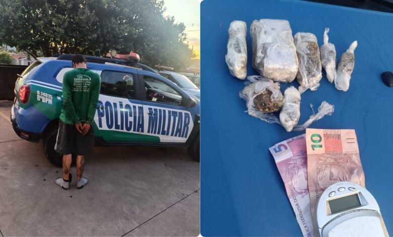 Durante a revista pessoal, os policiais apreenderam porções de substância análoga à maconha, além de uma balança de precisão e dinheiro em espécie. Na sequência, o homem confessou a prática do tráfico e afirmou que utilizava o próprio local de trabalho como ponto de venda dos entorpecentes.