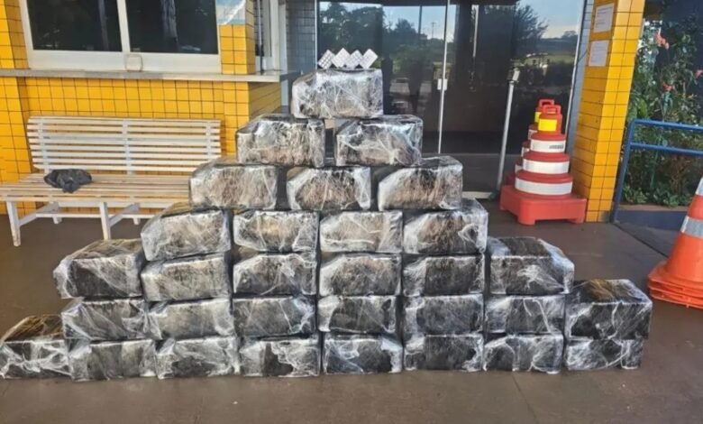 Diante da inconsistência nas respostas, os policiais realizaram uma vistoria minuciosa e localizaram 32 fardos de cloridrato de cocaína, forma mais pura da droga. A equipe também encontrou quatro cartelas com 60 comprimidos de anfetamina.