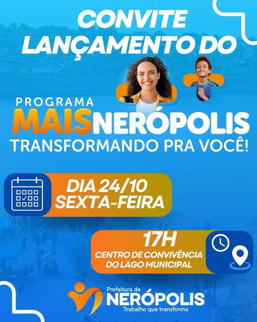Quem circula pelas ruas de Nerópolis já percebeu as ações identificadas com o nome “Mais Nerópolis”. Agora, a prefeitura vai apresentar oficialmente o programa nesta sexta-feira (24), no Centro de Convivência do Lago Municipal, a partir das 17h. A iniciativa reúne manutenção urbana, zeladoria e um grande pacote de investimentos que promete transformar a cidade.